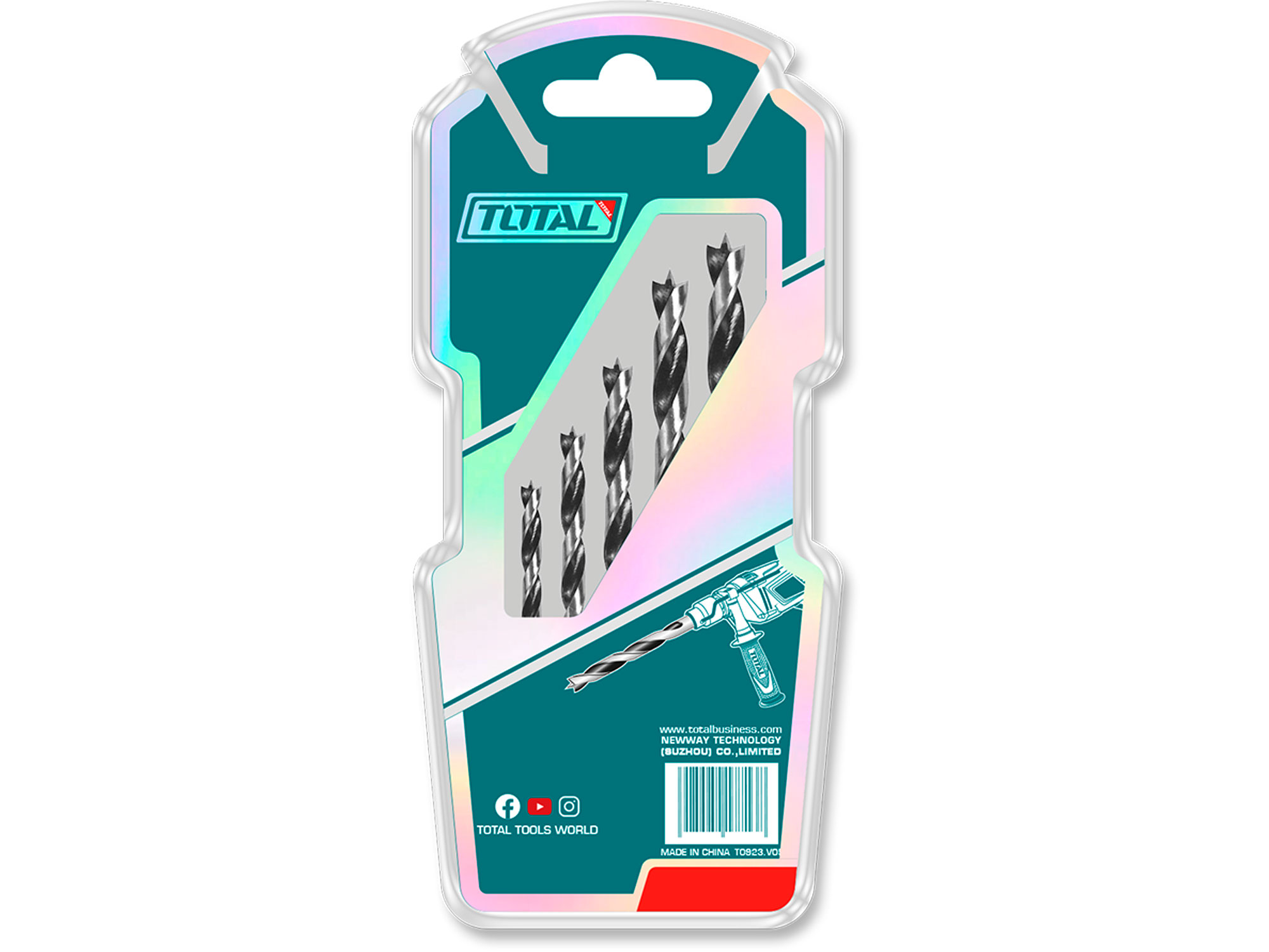 - Ett bor med en diameter på 4 mm og en lengde på 75 mm - Et bor med en diameter på 5 mm og en lengde på 86 mm - Et bor med en diameter på 6 mm og en lengde på 93 mm - Et bor med en diameter på 8 mm og en lengde på 117 mmDisse borene brukes vanligvis til bearbeiding av tre. De er designet for bruk i en drill eller en batteridrevet skrutrekker.