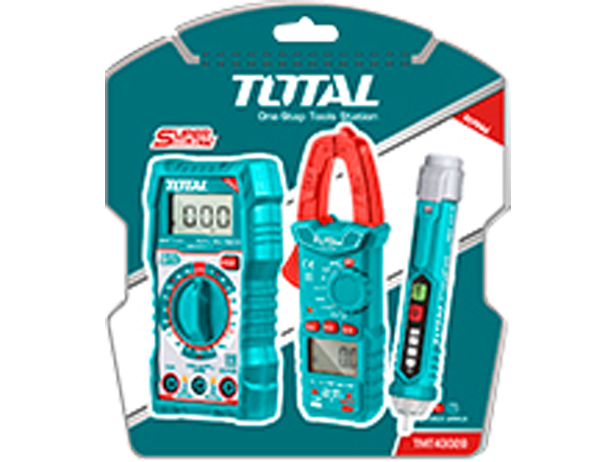 Sett bestående av digitalt multimeter, tangmultimeter og vekselspenningstester, Total