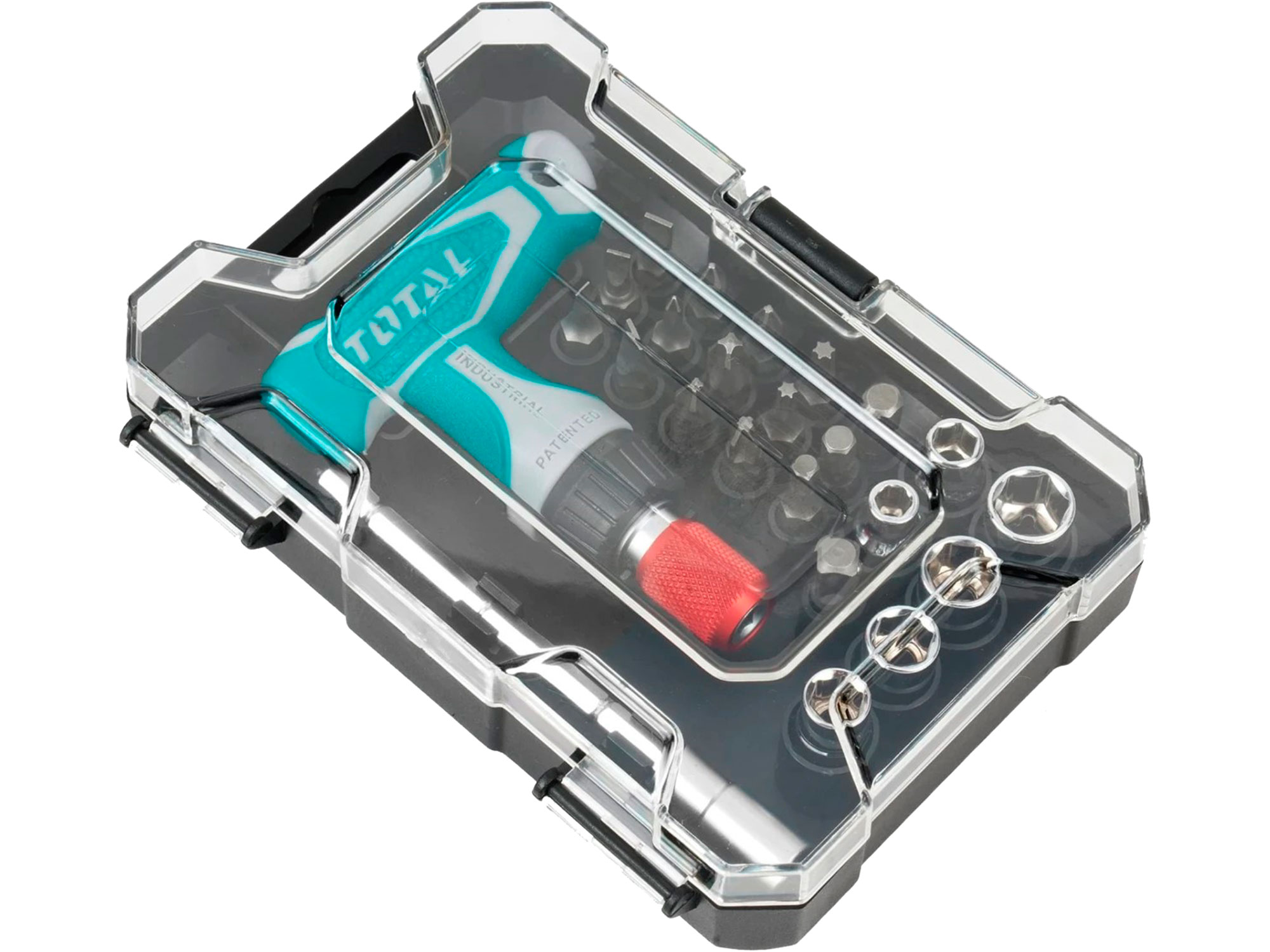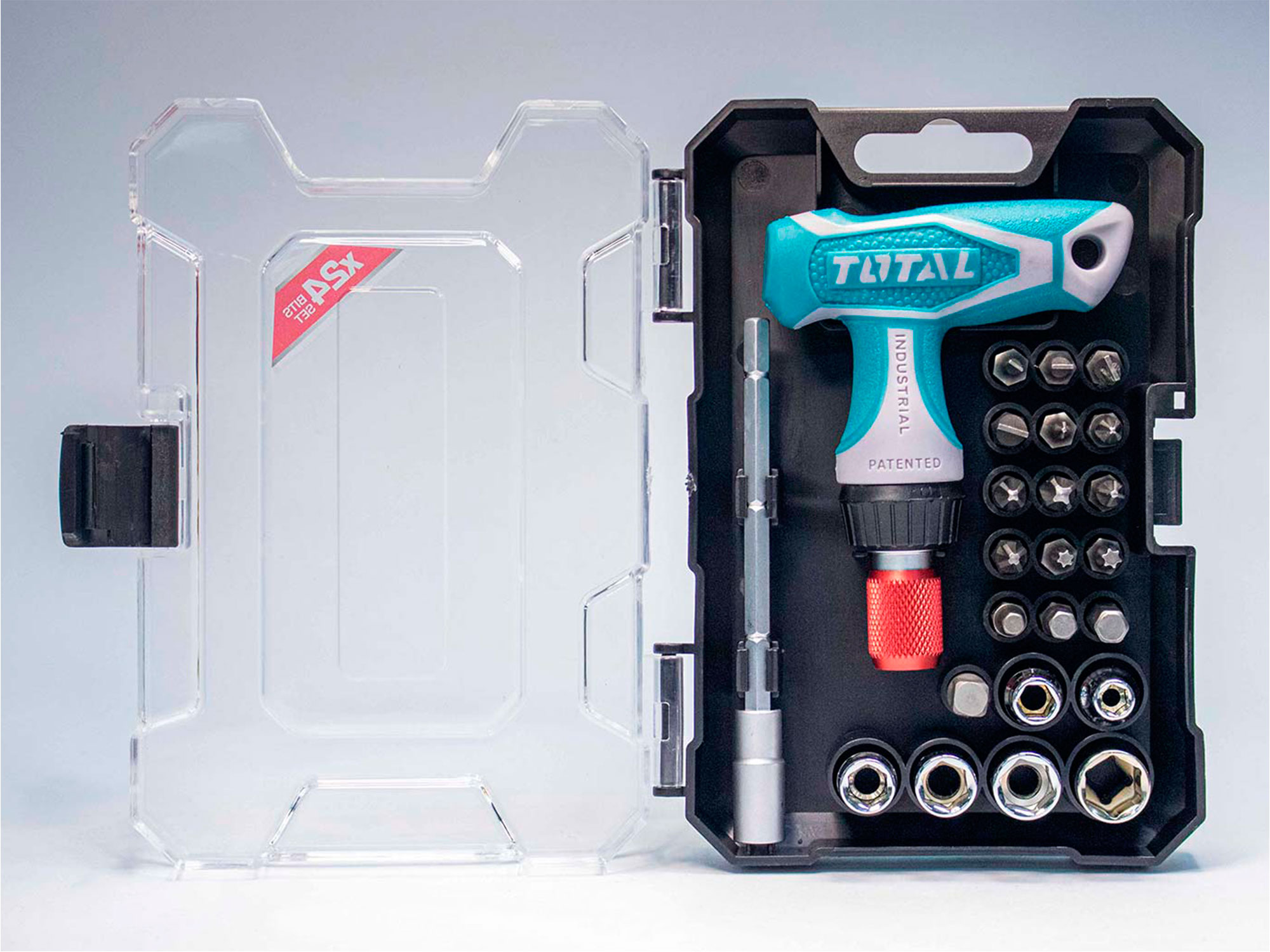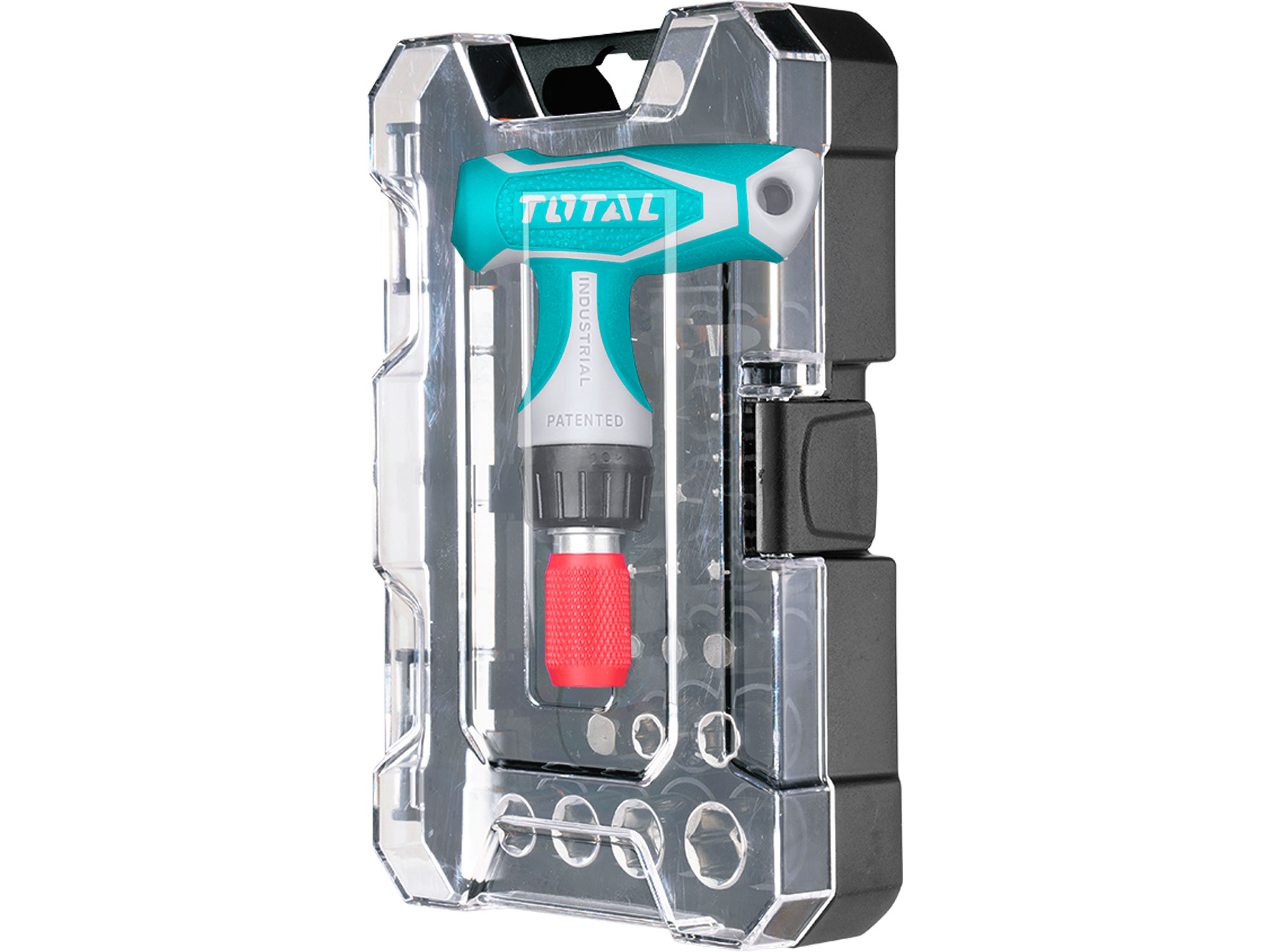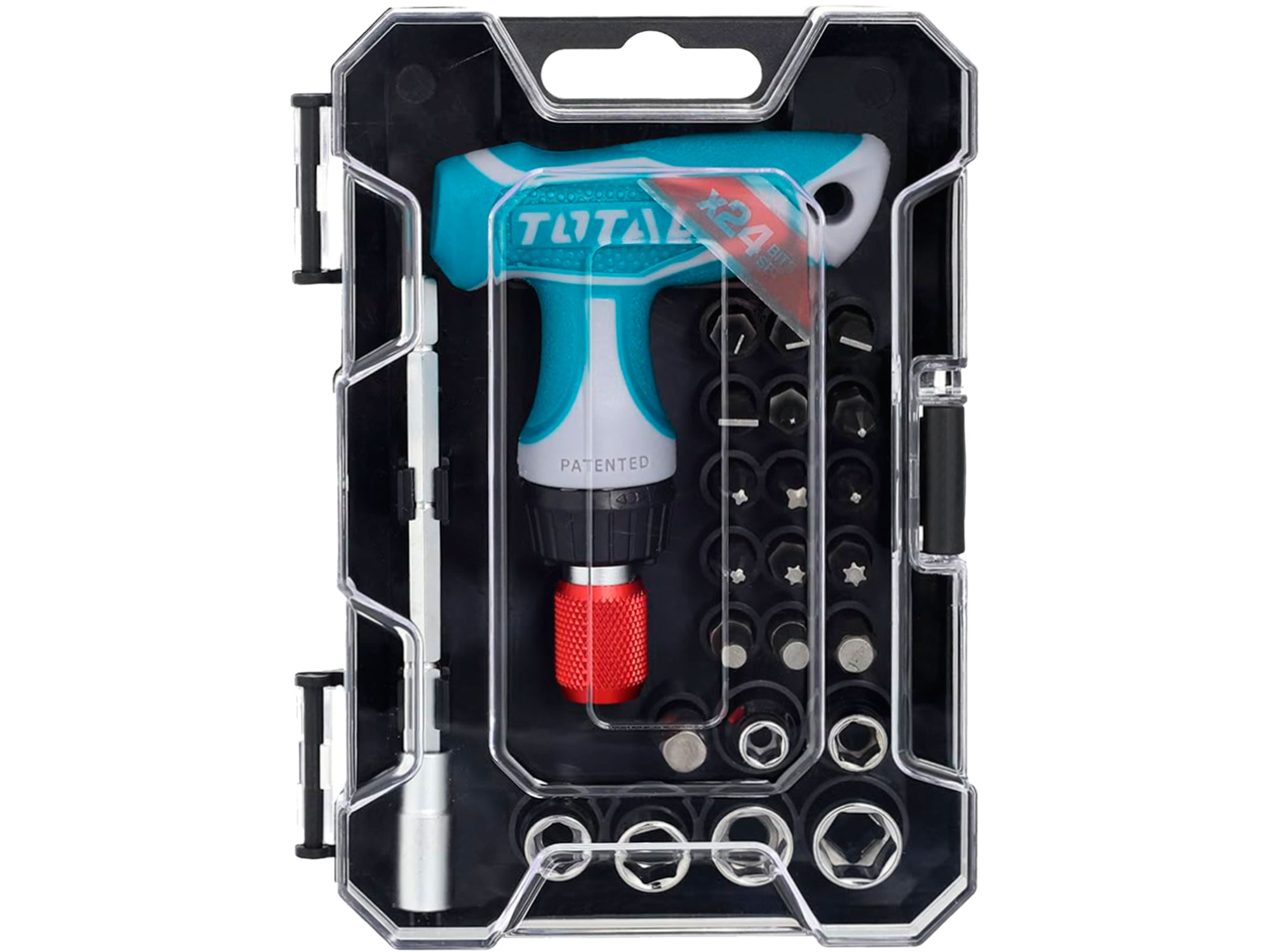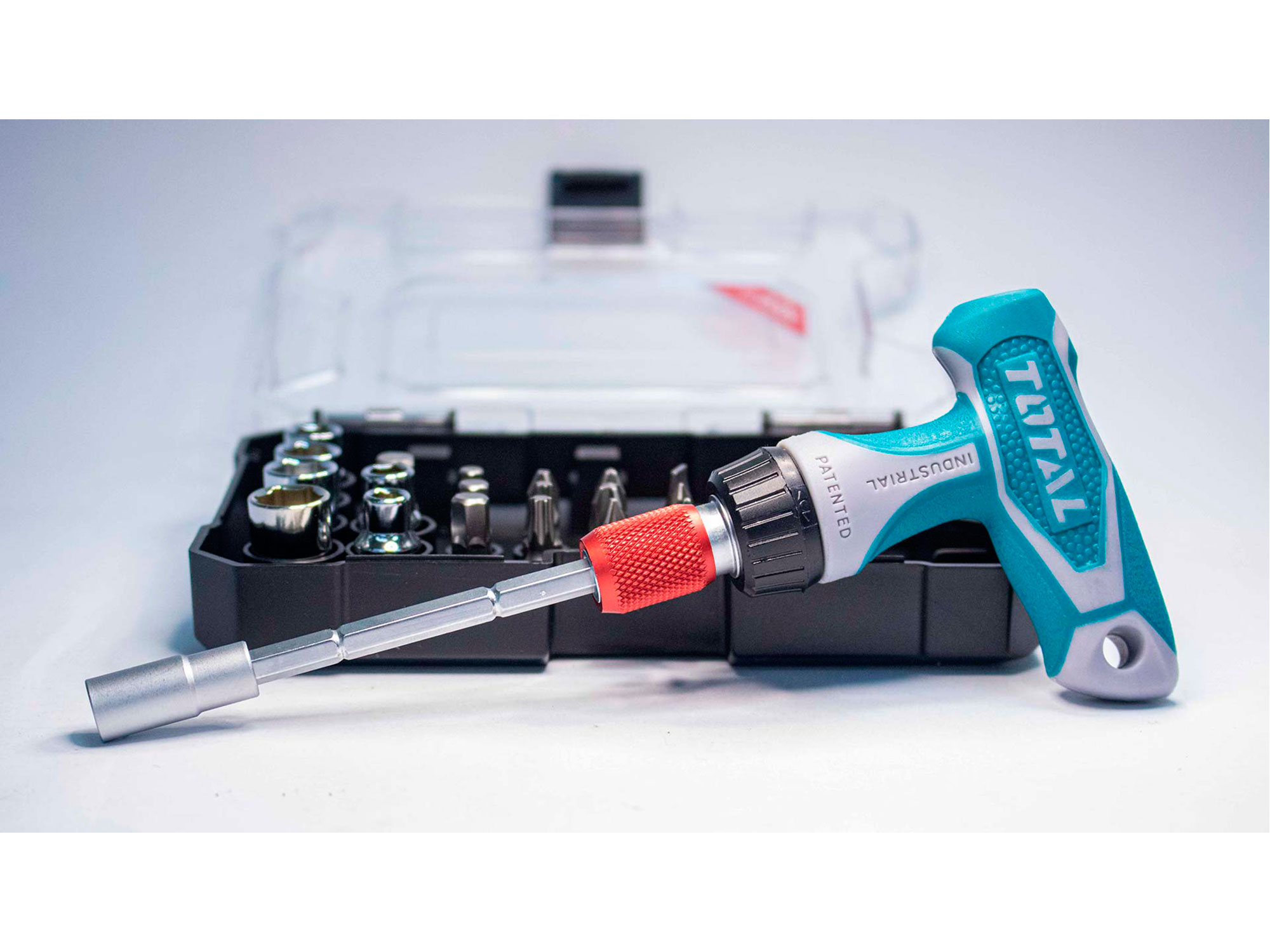 Total Skralle skrutrekker med T-håndtak og spisser, sett med 24 stk, CrV