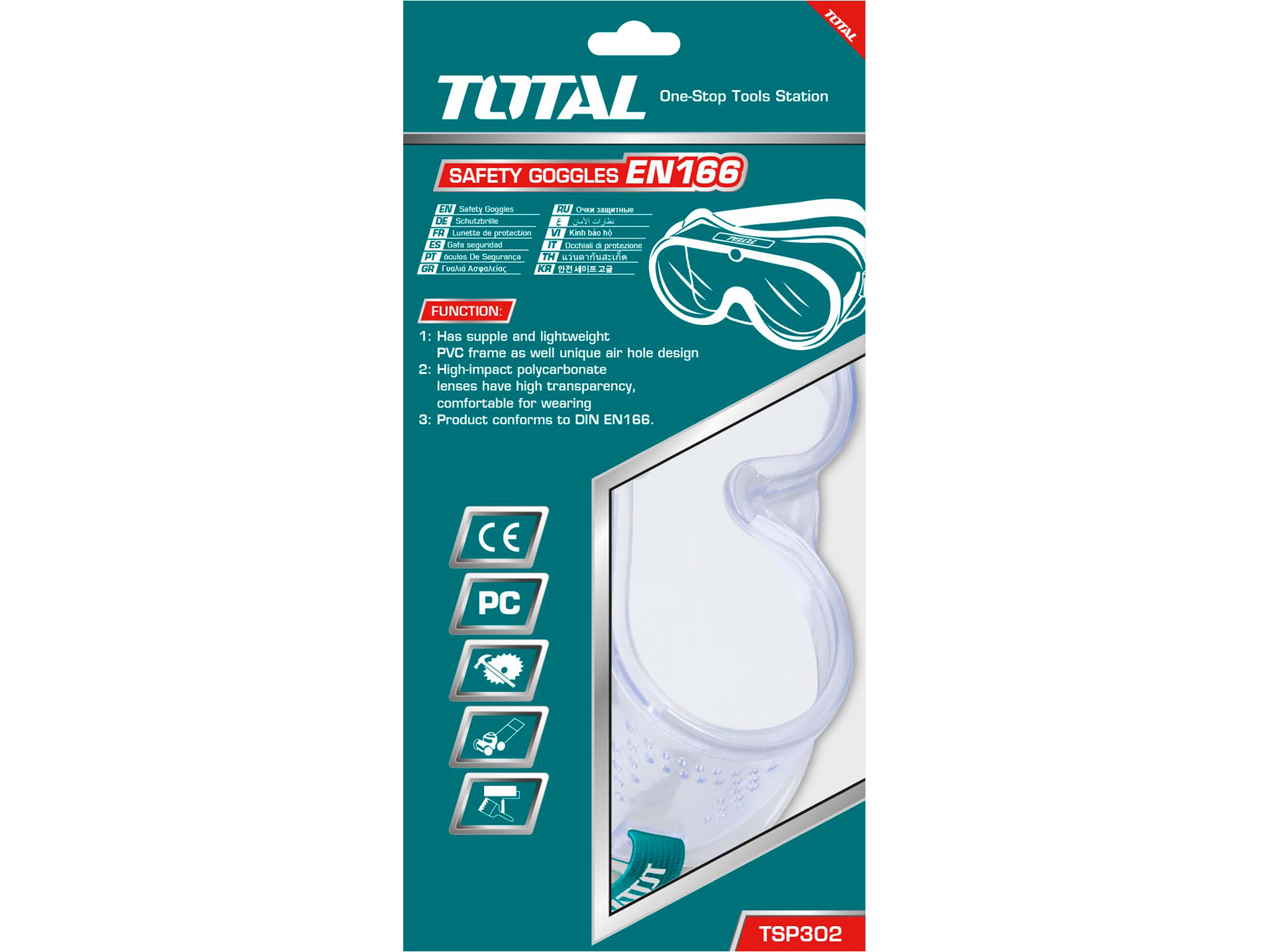 Den fleksible PVC-innfatningen sørger for en behagelig passform og tilpasser seg perfekt til alle ansiktsformer. De harde polykarbonatlinsene er ripebestandige og har høy slagfasthet for å beskytte øynene mot væsker, støv og mekaniske påvirkninger. De gir også optimal beskyttelse i sterkt sollys takket være UV-beskyttelse.